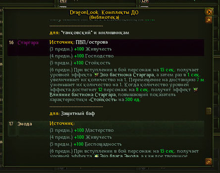 В настройках можно выбрать режим отображения Библиотеки комплектов (информация с описанием  из файла или из игры)