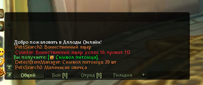 В чат выводит количество предметов в сумке по добытому (Тоже самое что тыкнуть по нему в чате)